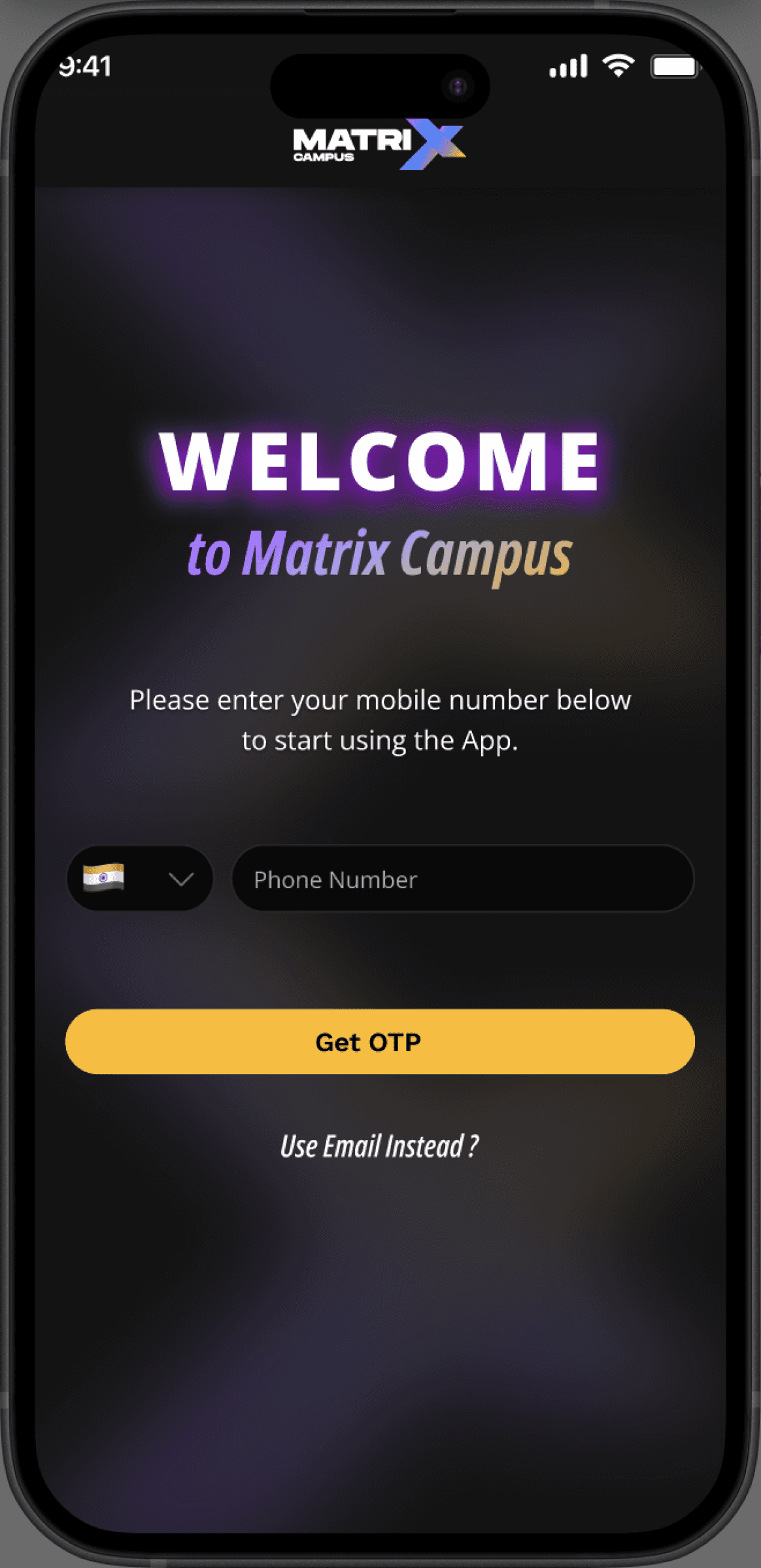 Log in using your email ID. Answer a few simple questions to customize the app for your university needs and start exploring.